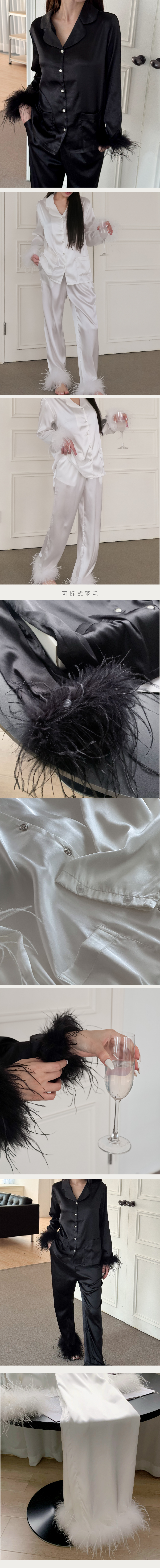 -絲緞光澤、袖口羽毛採可拆式設計,隨心切換造型