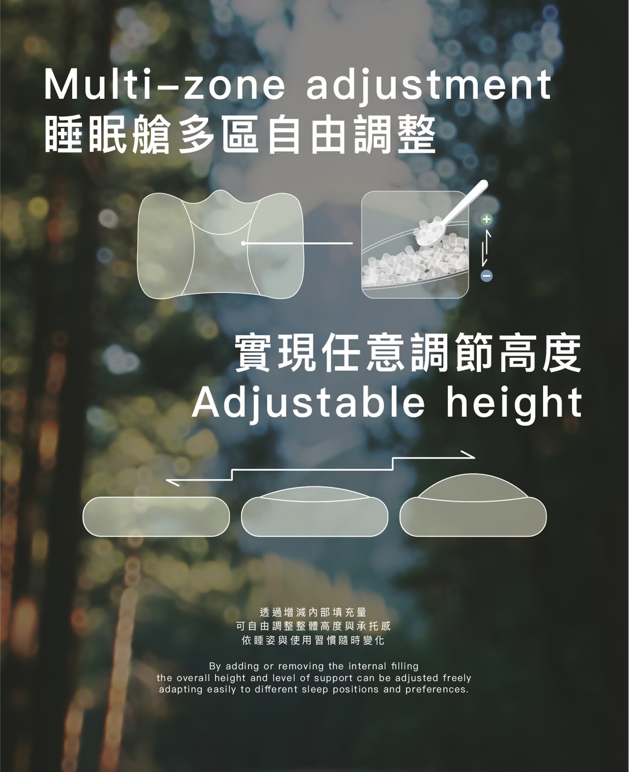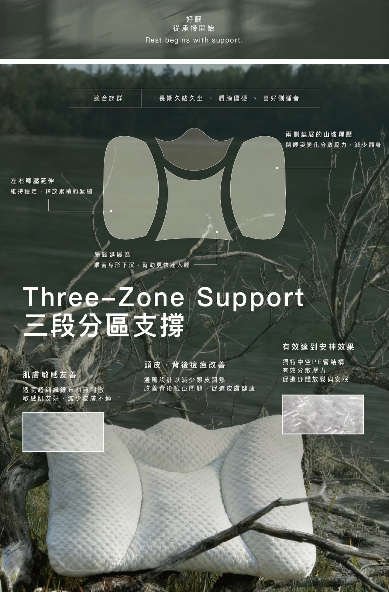 三段結構隨睡姿變化分散壓力,幫助放鬆肩頸、加速入眠。